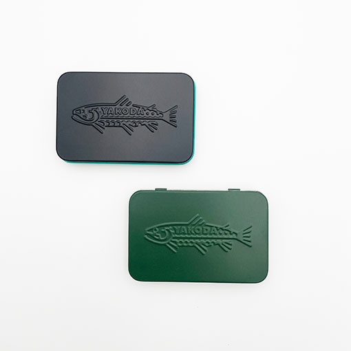 ・オリジナルのフライ缶(Fly Tin)の2倍の量のフライを収納でき、薄型になっています。また、ティール色のアクセントとYakodaグラフィックのエンボス加工を加え、100%オリジナルのフライボックスに仕上げました。