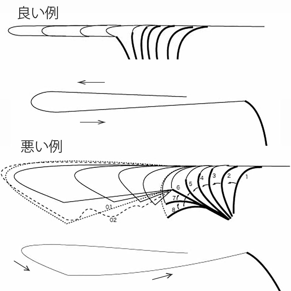 美しい直線なバックキャストは、パワーロスが無いために、さらにパワーを増した完璧なフォワードキャストを生む!